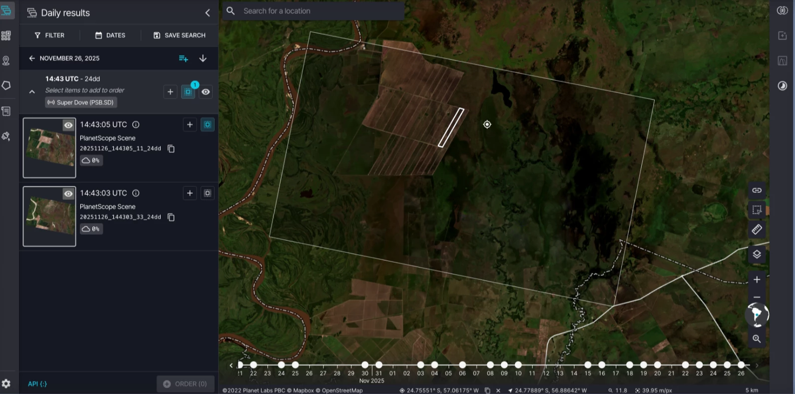 For our AOI, the PlanetScope SuperDove scene from 26 November is: