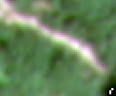 The Observation: In my area of interest (hilly terrain), I have observed a distinct color artifact along the boundaries of landslides (the interface between bare soil and vegetation).