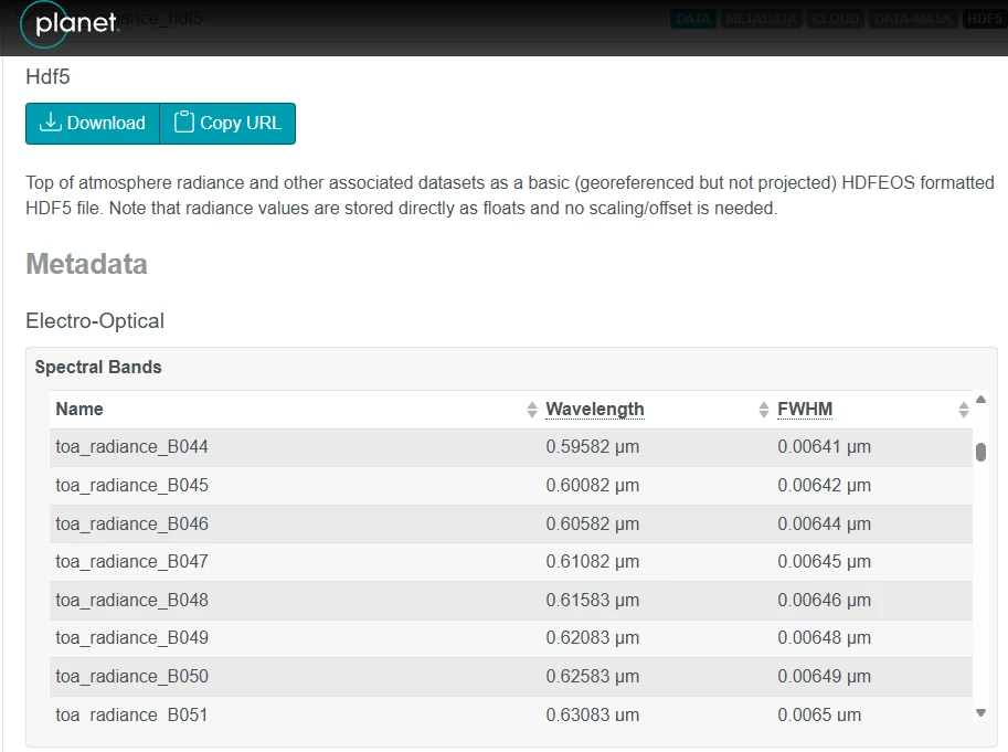 Wavelength centers and other useful metadata are included with the radiance and reflectance HDF5 files. I am sharing it here as well for convenience.